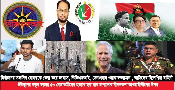 নির্বাচনের তফসিল ঘোষণাকে কেন্দ্র করে জামাত, মিলিশিয়াবাহীনি এবং ইউনূসের ডিজিএফআইয়ের নতুন ষড়যন্ত্র ৫০ নেতাকমীদের হত্যার ছক ঢাকায় অস্ত্র পরিবহন
