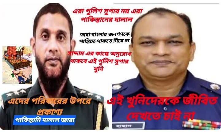 আগামী দিনে এই পুলিশ সুপারের নামে সন্ত্রাসী গডফাদারকে প্রকাশ্য জনতায় হত্যা করার দরকার না হলে এভাবে আরও অনেক হাজার পরিবার হারাতে হবে কারণ এরাই নারায়ে তাকবীর বলে মানুষকে হত্যা করতে তাদের বুক কাঁপে না হাত কাঁপে না আসমান কাফেরা থাকে শুধু আনন্দ উল্লাস তাই এরা মীরজাফর পুলিশ সুপারকে প্রকাশ্যে হত্যা করা হোক গণপিটুনি দেওয়া হোক পুলিশ সুপারের কার্যালয় ঘিরা দেয়া হোক পাশে আগস্টের পরে হাজার হাজার পুলিশকে হত্যা করেছে জানোয়ার বাচ্চাকে কিভাবে রেখে দিয়েছে আসলেই থাকবে এরাতো পাকিস্তানের দালাল বর্তমান তাদের শাসন চলতেছে।