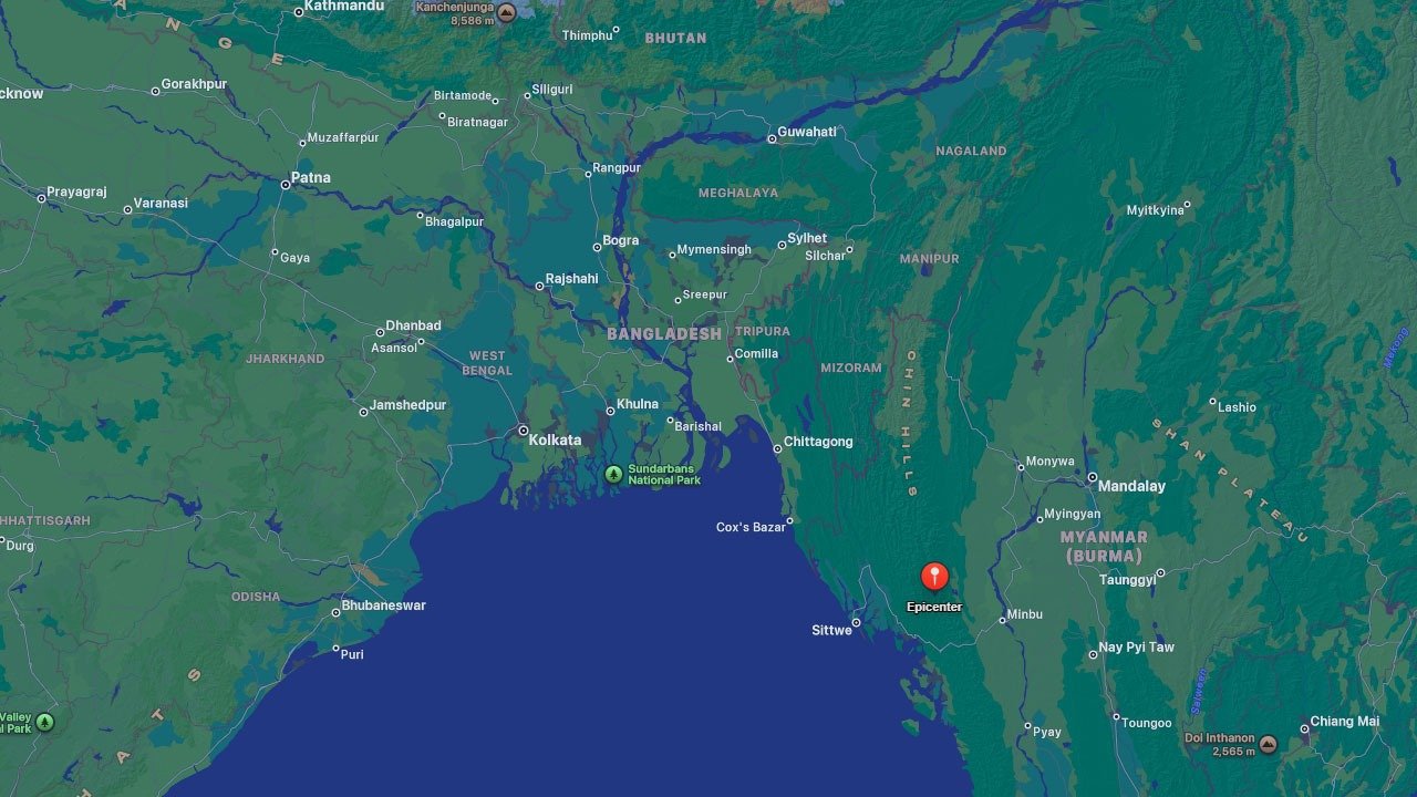 এই ভূমিকম্পের উৎপত্তিস্থল ঢাকা থেকে ৫১৬ কিলোমিটার দূরে মিয়ানমারের রাখাইনে। রিখটার স্কেলে এর মাত্রা ছিল ৬।