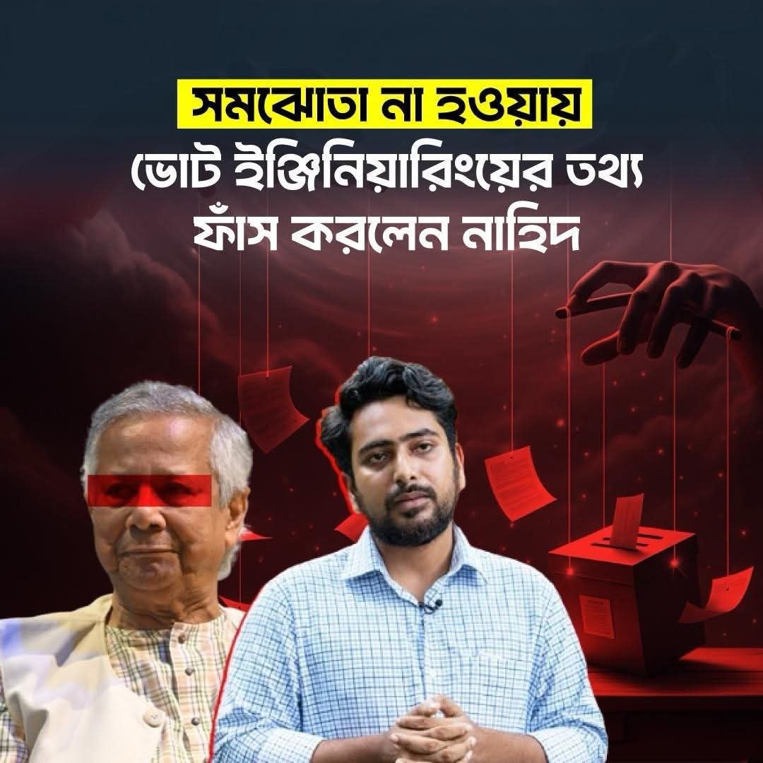 সমঝোতা না হওয়ায় ভোট ইঞ্জিনিয়ারিংয়ের তথ্য ফাঁস করলেন নাহিদ